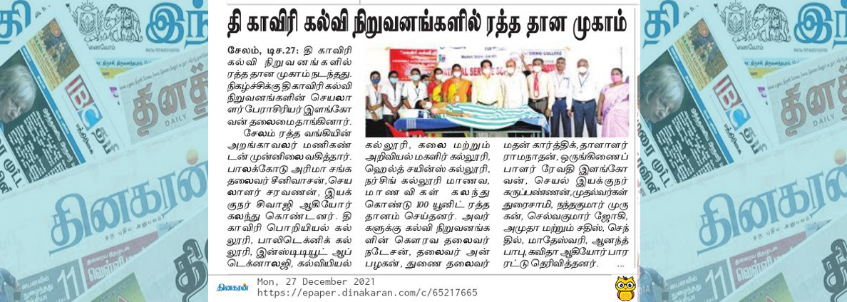 “THE KAVERY EDUCATIONAL INSTITUTIONS” the education is much sought after by parents of various categories for the coveted education at “KAVERY ARTS & SCIENCE COLLEGE” of their daughters. We enlighten the students with quality education with our experienced & talented faculties. The safety and security for women candidates is given 100% assurance. Comfortable classrooms, well equipped laboratories with modern instruments are available to enlighten their future. The College strives for the over-all development of the rural students through academic excellence, moral rectitude, character building and personality development.